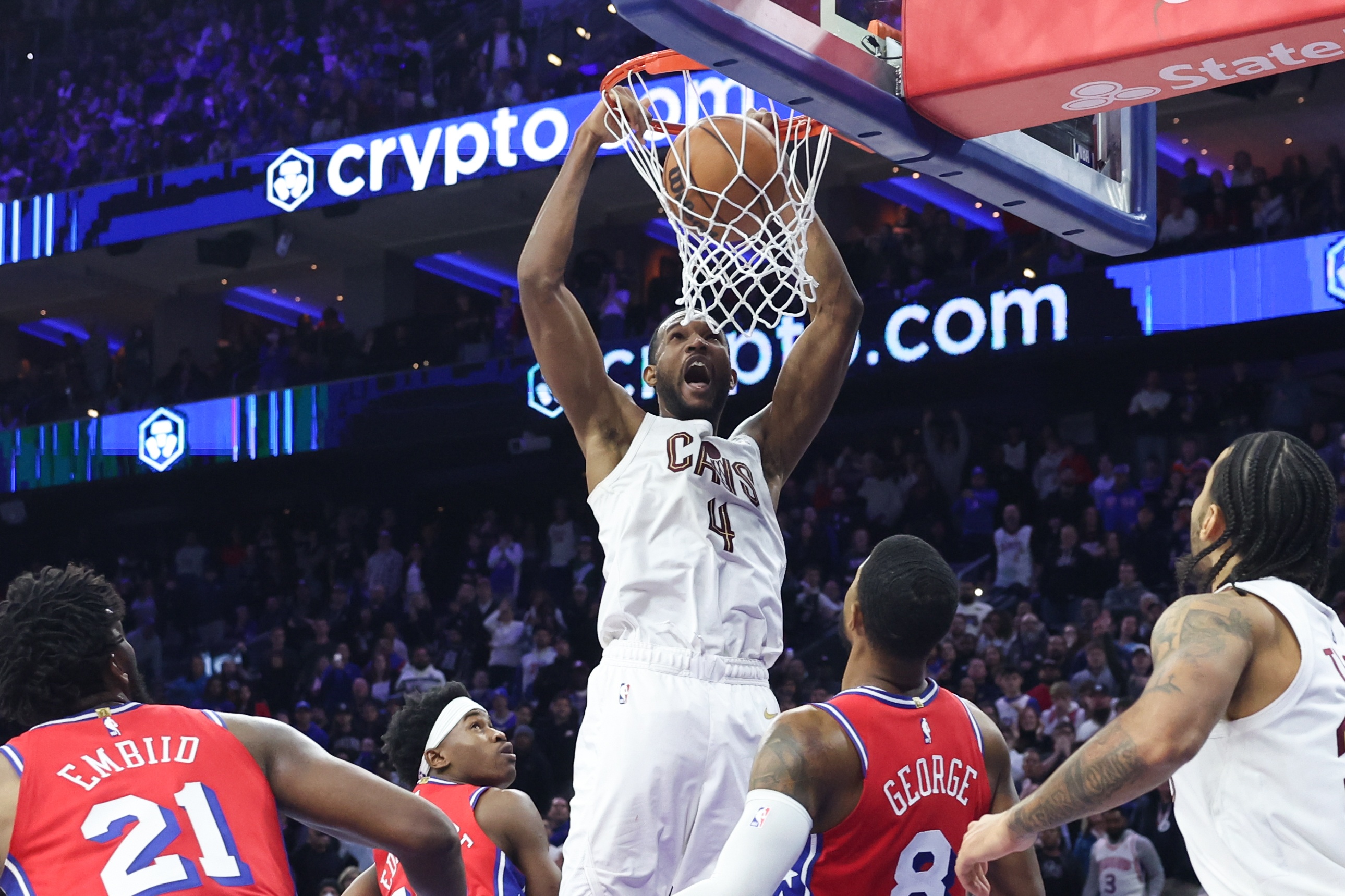 比赛最后时刻,双方战成115-115,骑士进攻回合,杰伦·泰森左侧底角接球往里冲,随后分球埃文·莫布里,后者起跳扣篮得手完成准绝杀。76人没有暂停了,马克西超远三分出手不中,比赛结束。